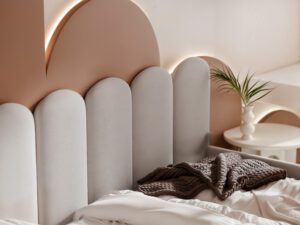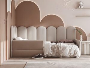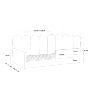 Łóżko JASMINE to doskonały wybór dla najmłodszych – łączy komfort, bezpieczeństwo i wyjątkowy design, tworząc przytulną przestrzeń do snu i zabawy. Dzięki swojej niskiej konstrukcji i miękkim dekoracyjnym tapicerowanym bokom jest bezpieczne i idealne jako pierwsze łóżko dla dziecka, zapewniając spokojny sen i swobodę użytkowania.