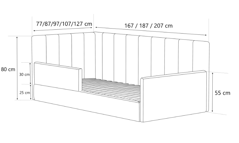 - Powierzchnia spania: 70/80/90/100/120 cm