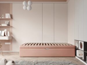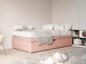 Łóżko wyposażone jest w praktyczną szufladę na pościel, co sprawia, że organizacja przestrzeni staje się łatwiejsza. Wysuwana szuflada pomieści kołdry, poduszki, a także zabawki czy inne drobiazgi, pomagając utrzymać porządek w pokoju