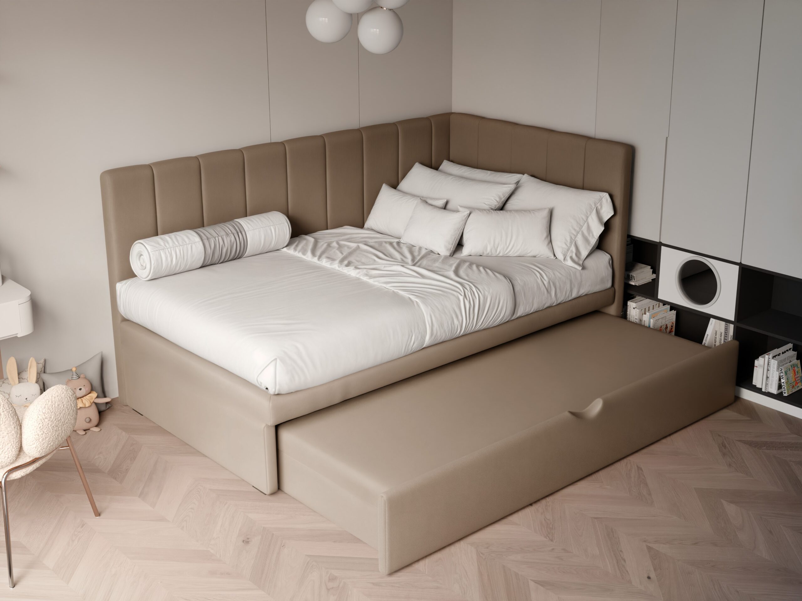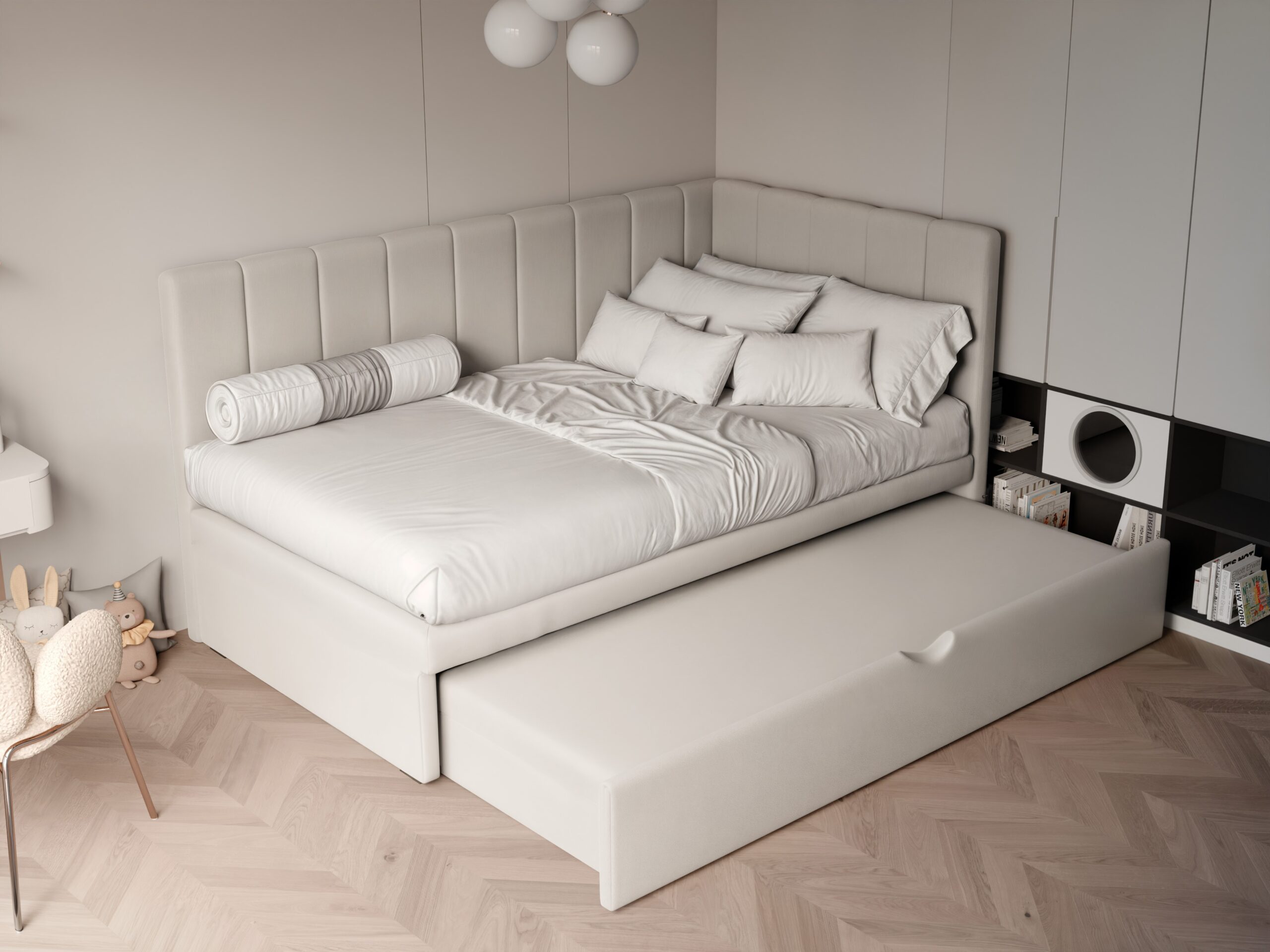 ✅ Nowoczesny i uniwersalny design – łóżko świetnie komponuje się z różnymi stylami wnętrz i pasuje zarówno do pokoju chłopca, jak i dziewczynki.