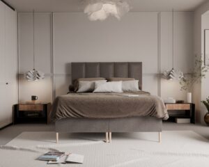 Łóżko kontynentalne CLASSIC charakteryzuje się prostym, klasycznym designem, który pasuje do różnych wnętrz sypialnianych.