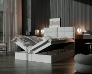 Posiada wbudowany system przechowywania pod materacem, która oferuje dużą przestrzeń na przechowywanie.