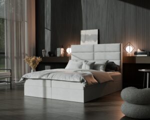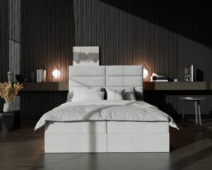 Łóżko kontynentalne ELLA2 z z tapicerowanym wezgłowiem w kształt prostokątów, wyróżnia się prostotą i elegancją.