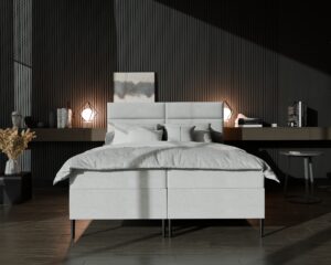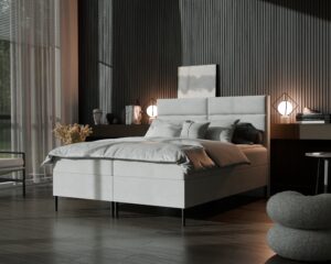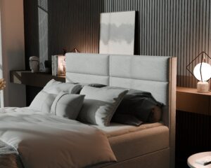 Łóżko kontynentalne ELLA z  z tapicerowanym wezgłowiem w kształt prostokątów, wyróżnia się prostotą i elegancją.