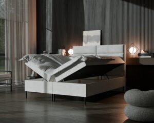 Posiada wbudowany system przechowywania pod materacem, która oferuje dużą przestrzeń na przechowywanie.