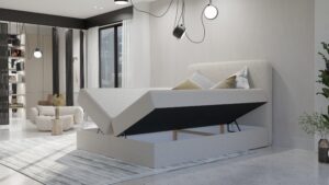 Solidna konstrukcja w połączeniu z wysoką jakością wykonania zapewnia nie tylko estetyczny wygląd, lecz także trwałość i komfort użytkowania. Łóżko LAMI 2 posiada wbudowany materac kieszeniowy 7-strefowy, zapewniający odpowiednie podparcie dla kręgosłupa i komfortowy sen. Dodatkowo, wyposażone jest w dwa osobne pojemniki na pościel, otwierające się na boki, idealne do przechowywania dodatkowych elementów.