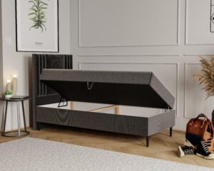 Łóżko wyposażone jest w podnoszony pojemnik na pościel , co sprawia, że organizacja przestrzeni staje się łatwiejsza.