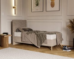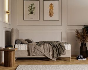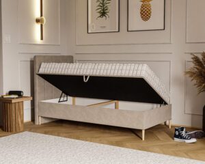 Łóżko wyposażone jest w podnoszony pojemnik na pościel , co sprawia, że organizacja przestrzeni staje się łatwiejsza.