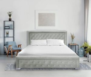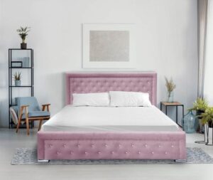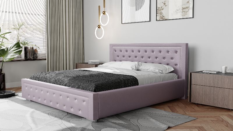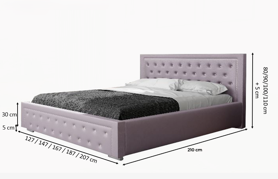 ✅ Elegancki i stylowy design – Model wyróżnia się tapicerowanym wykończeniem z ozdobnymi diamentami lub cyrkoniami na wezgłowiu i panelu, co nadaje mu luksusowy i nowoczesny charakter – świetny do wnętrz, gdzie zależy Ci na estetyce.